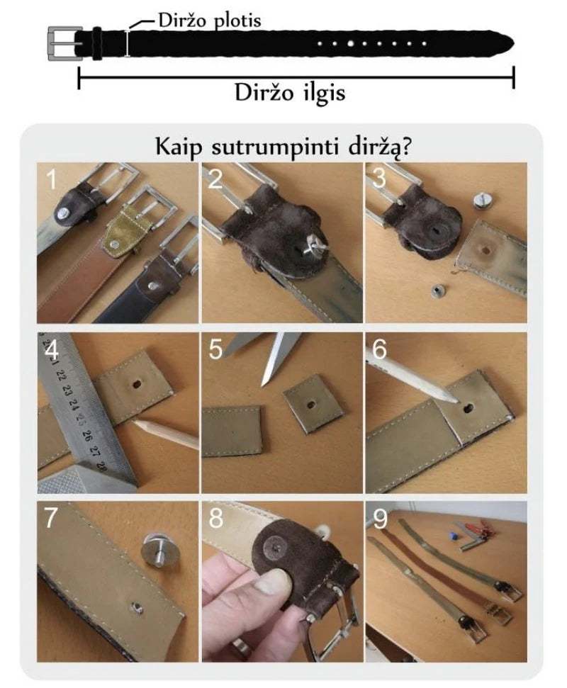 Diržo ilgis matuojamas nuo diržo pradžios iki pabaigos (be sagties). Galima paklaida +/- 0,5 cm