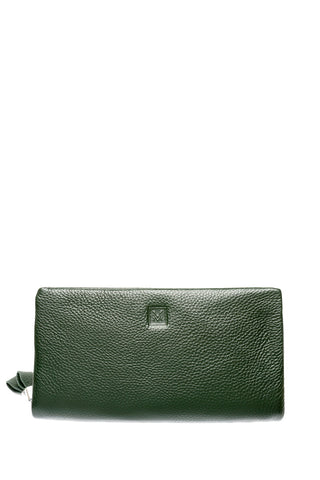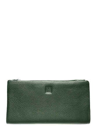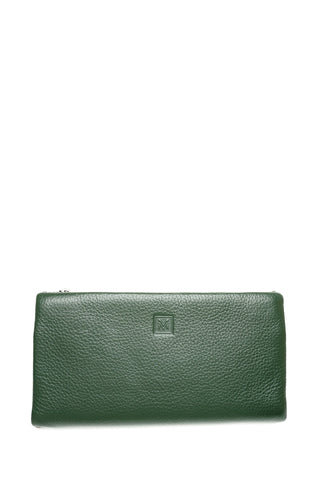 Žalia odinė piniginė/delninė su dvigubu užtrauktuku